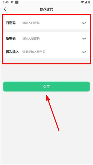 4、在修改密码页面,依次输入旧密码、新密码并再次输入新密码后,点击保存按钮,完成密码修改操作。