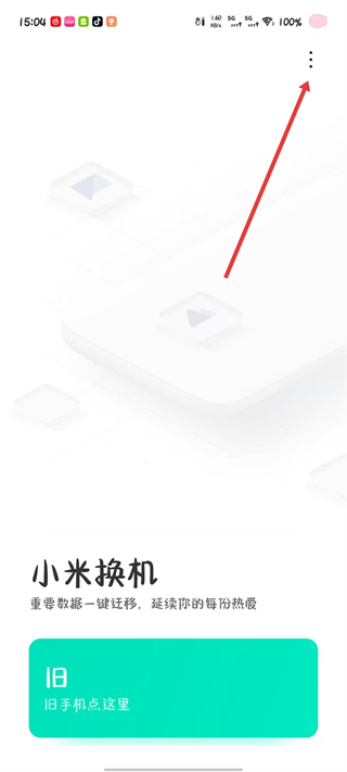 1、打开小米换机应用主界面,找到右上角三点样式的菜单图标,点击该图标。