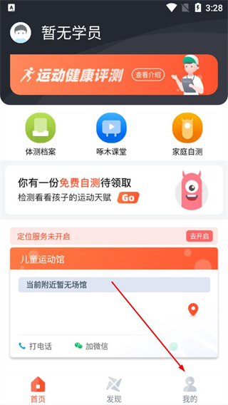 1、在啄木鸟运动app的首页,点击底部的我的选项。