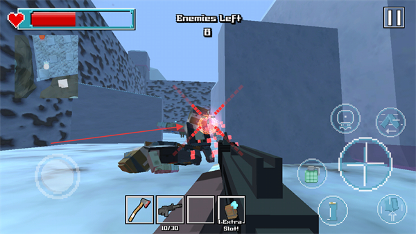像素画风勾勒出多样战场场景,从丛林狩猎场到废弃都市据点,不同地图的地形特征鲜明,射击时的像素特效简洁有力,营造出复古又热血的战斗氛围。