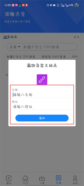 3、输入名称和网址,点击添加按钮。