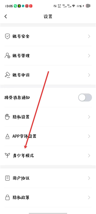 2、找到青少年模式选项并点击,进入青少年模式的说明页面。