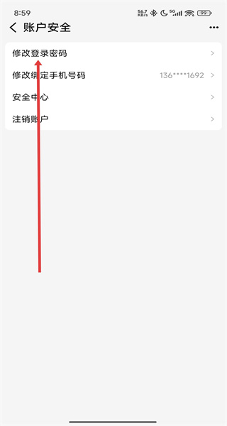2、在账户安全的界面里,点击修改登录密码的选项,进而进入身份验证的流程。
