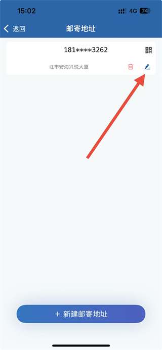 3、在邮寄地址页面点击编辑图标,进入编辑地址页面。