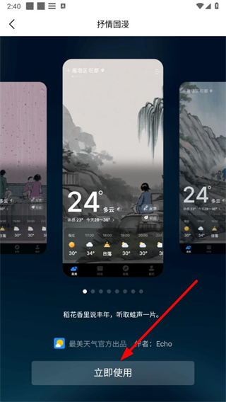 4、进入所选主题页面后,点击立即使用按钮,即可完成主题更换操作。
