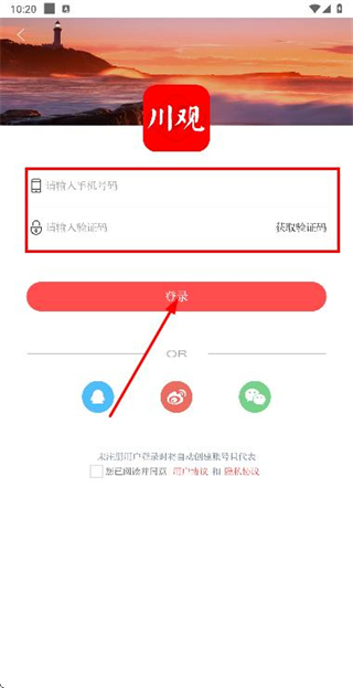 3、在登录页面填写手机号和验证码,勾选协议后,点击登录完成账号登录操作。