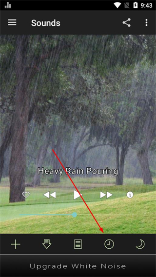 1、在白噪音睡眠的Sounds页面,点击底部的时钟图标,进入Timers页面。