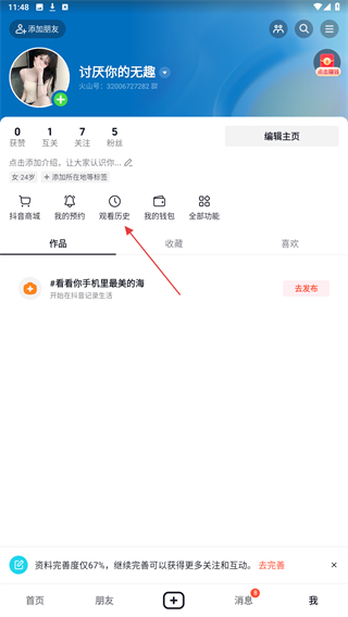 火山小视频怎么清空历史浏览记录
