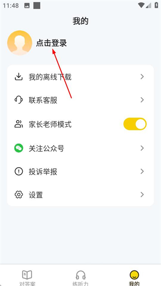 1、在答案来了首页,点击底部的我的选项,进入个人页面。