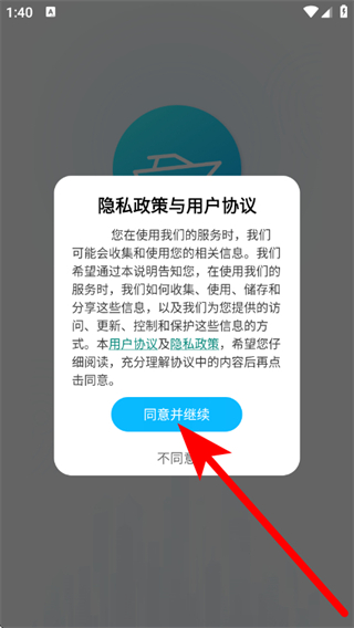 1、打开拼个船,在弹出提示框,点击同意并继续,进入登录界面。