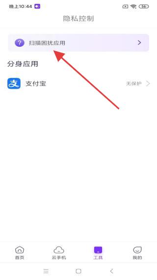 2、在隐私控制的页面内,点击扫描困扰应用的区域。
