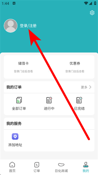 2、在我的页面,点击登录注册,进入登录页面。