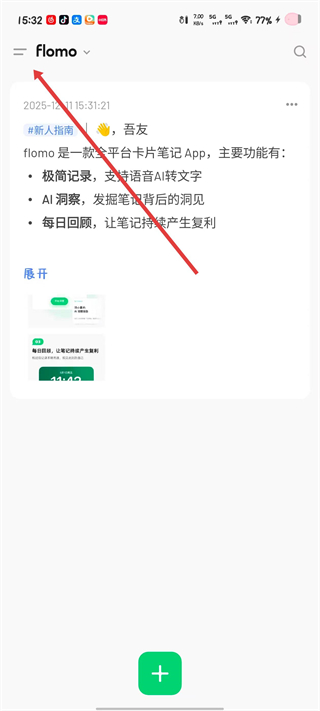 1、打开flomo浮墨笔记APP,在首页内点击正下方+号的按钮。