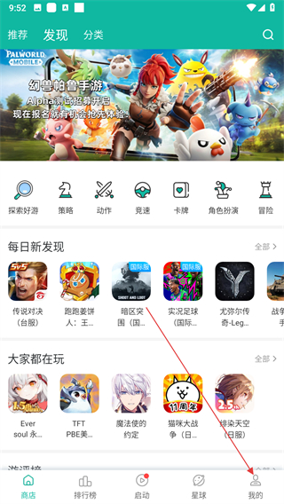 1、打开OurPlay应用,点击右下角我的。