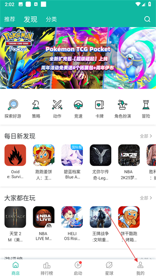 1、打开OurPlay软件,进入商店页面后,点击底部导航栏中的启动选项。