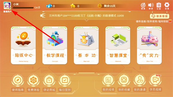 1、打开律动达人app,进入首页后,点击左上角的头像区域,进入个人信息页面。