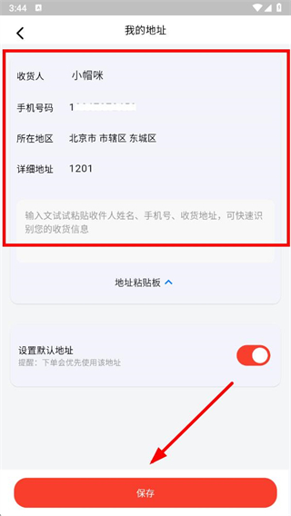 4、在编辑地址页面,修改收货人、手机号码、所在地区、详细地址等信息后,点击保存即可。