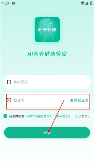 2、在正生云康登录页面,填写手机号码,进行下一步的操作。