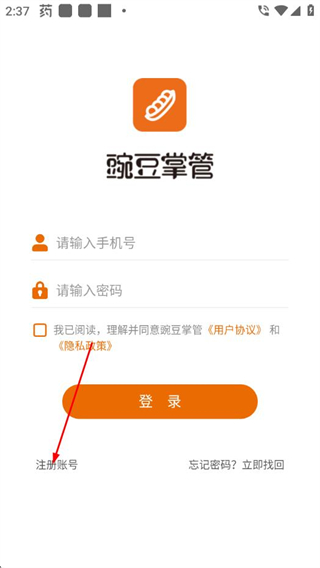 1、打开豌豆掌管app后,在弹出的隐私政策提示框中,点击同意。