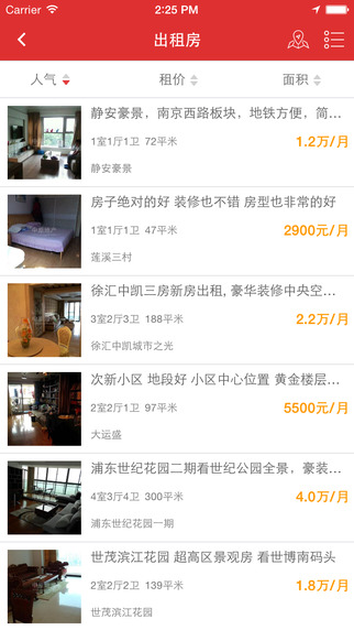 3.附近租房:利用GPS定位,非常方便的呈现周边的房屋租赁情况。
