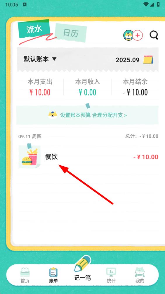 2、在账单界面中,找到需要删除的账单记录,比如餐饮消费记录,点击进入该账单详情页。