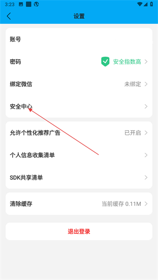 2、在设置页面点击安全中心选项,进入安全中心页面。