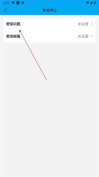 3、在安全中心页面点击密保问题选项,进入密保问题设置页面。