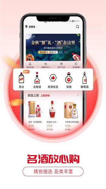 酒易淘app拥有独特的秒拍系统,汇聚广大知名品牌酒产品,最低价九块九就能包邮送上门;