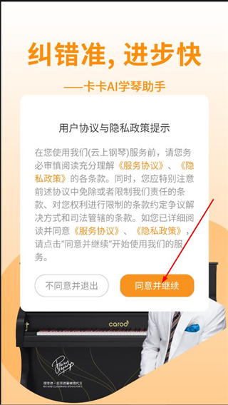 1、在用户协议与隐私政策提示弹窗中,点击同意,进入登录选择页面。
