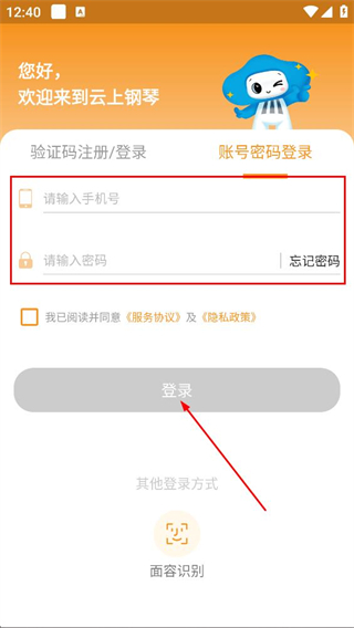 3、在账号密码登录界面,填写手机号和密码,点击登录,完成账号登录。