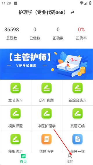1、在主管护师鸣题库首页,点击底部的我的选项,进入个人中心页面。