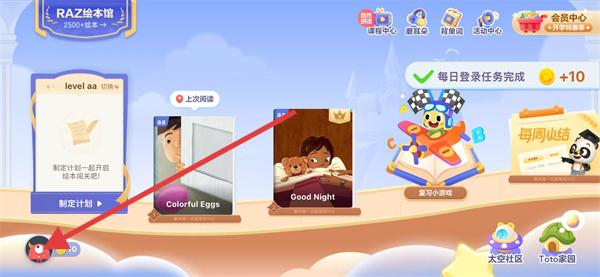1、打开英语分级阅读,点击左下角的头像图标。