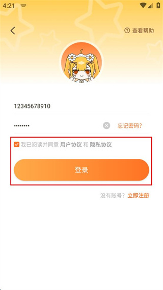 4、勾选同意相关协议后,点击登录按钮完成漫画人软件的账号登录操作。