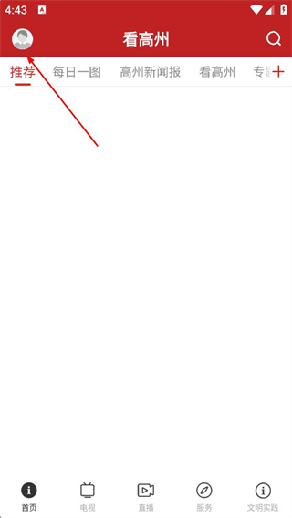 2、在看高州首页,点击左上角的头像区域,进入个人相关页面。