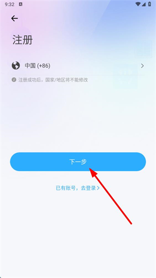2、在注册页面点击选择地区后,点击下一步按钮。
