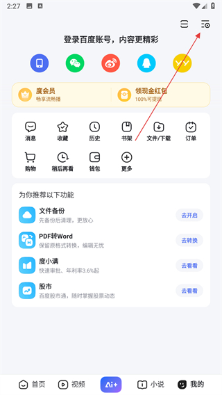 1、打开百度APP,点击右上角的三条横线菜单按钮。