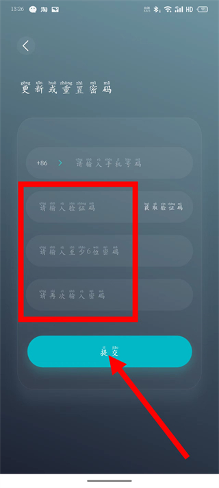 4、输入验证码、新密码及确认密码,点击提交,完成密码重置。