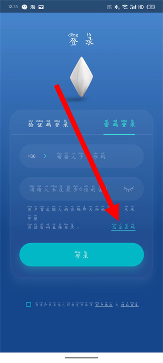 1、打开生命海洋,点击密码登录,切换至密码登录界面。