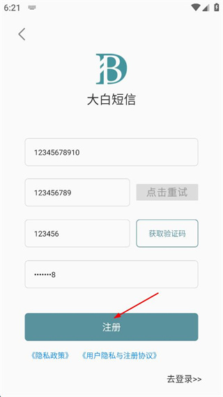 大白短信铃声怎么注册账号