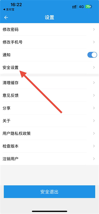 2、在设置界面里,找到安全设置选项并点击,进入安全相关的设置操作界面。