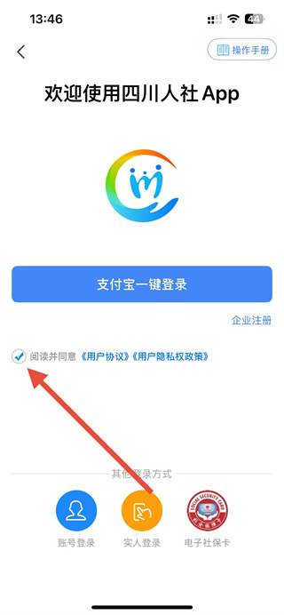 2、在登录界面,勾选阅读并同意用户协议、用户隐私权政策。