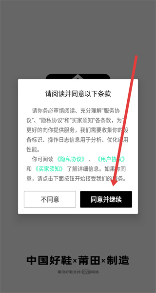 1、点击“请阅读并同意以下条款”弹窗的“同意并继续”,进入APP主界面。