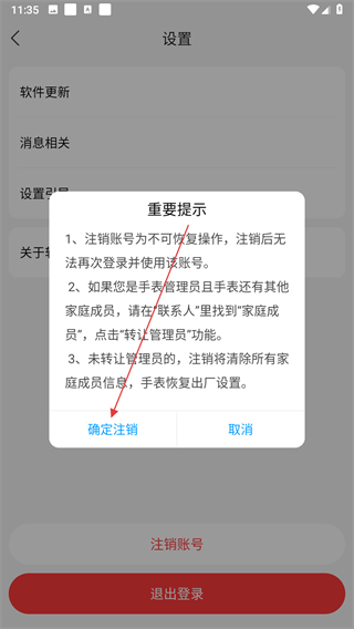 2、在设置界面中找到注销账号选项,点击该选项触发重要提示弹窗。