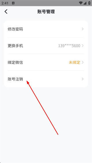 3、在账号管理页面点击账号注销选项,进入账号注销说明页面。