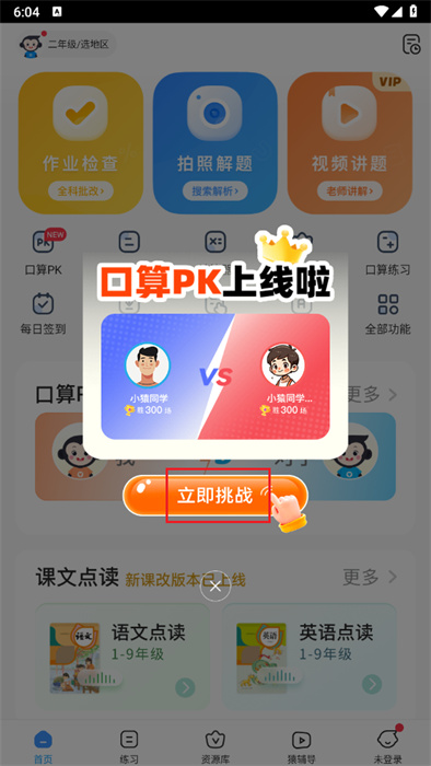 1、在APP首页点击底部练习按钮,进入学科练习模块,可查看课程同步练、VIP知识点讲解等学习内容,开启针对性练习。