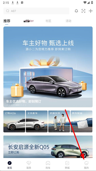 1、打开欧尚汽车APP,点击底部导航栏中的我的进入个人中心页面。