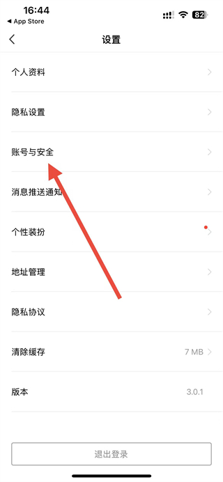 3、进入设置相关页面后,选择账号与安全选项,进入账号管理界面。
