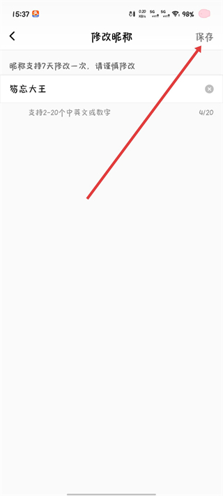 4、输入新的昵称名称,点击保存按钮。