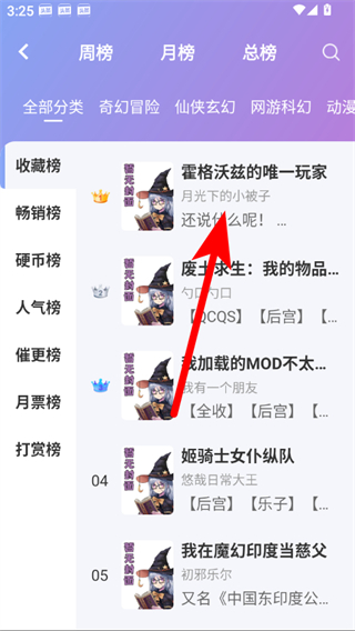 2、在排行页面,选择想阅读的书籍,进入书籍详情页。