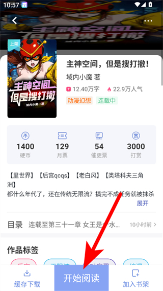 2、在小说详情页面,点击开始阅读按钮,进入阅读界面。